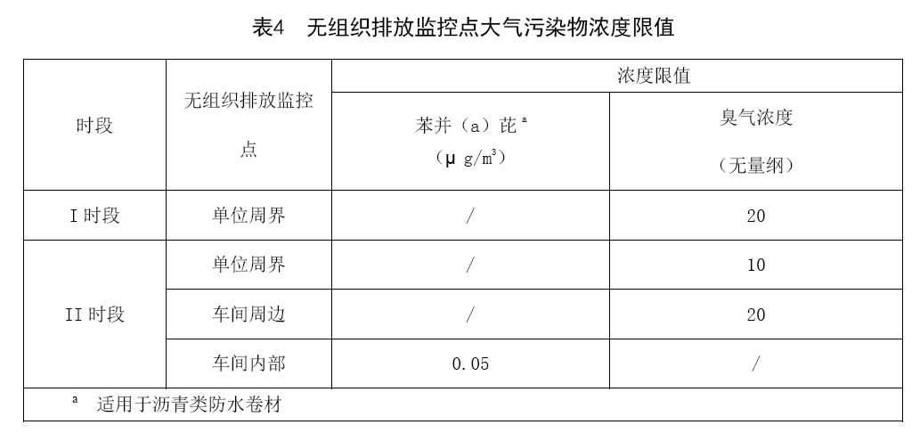 苯并芘和臭氣濃度無組織排放執行表4規定。